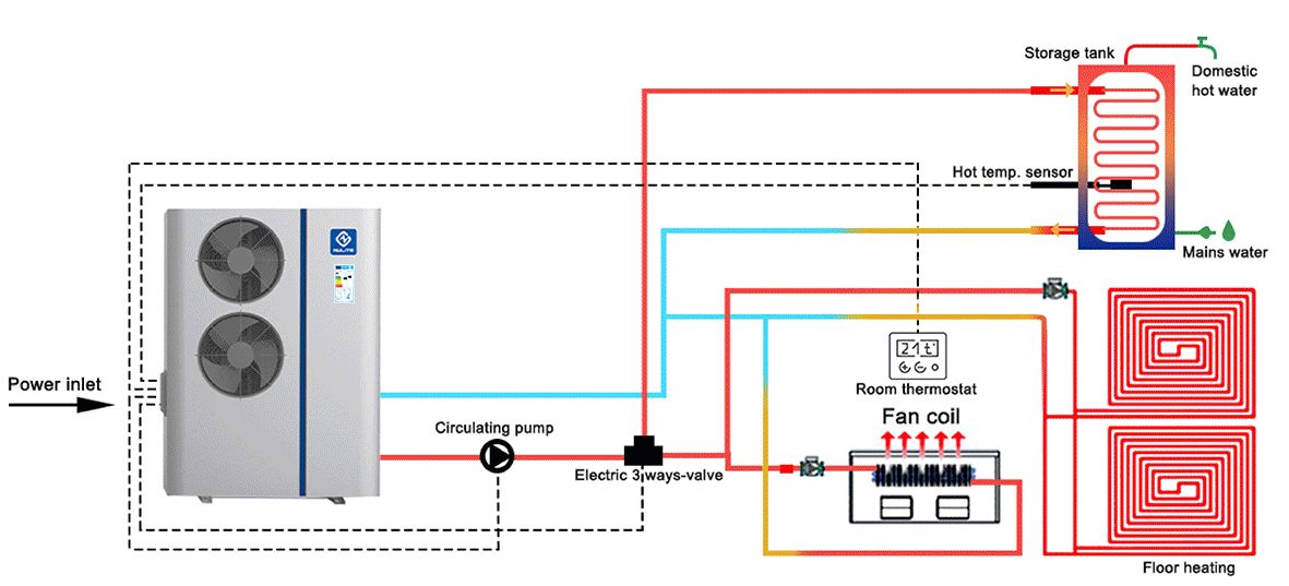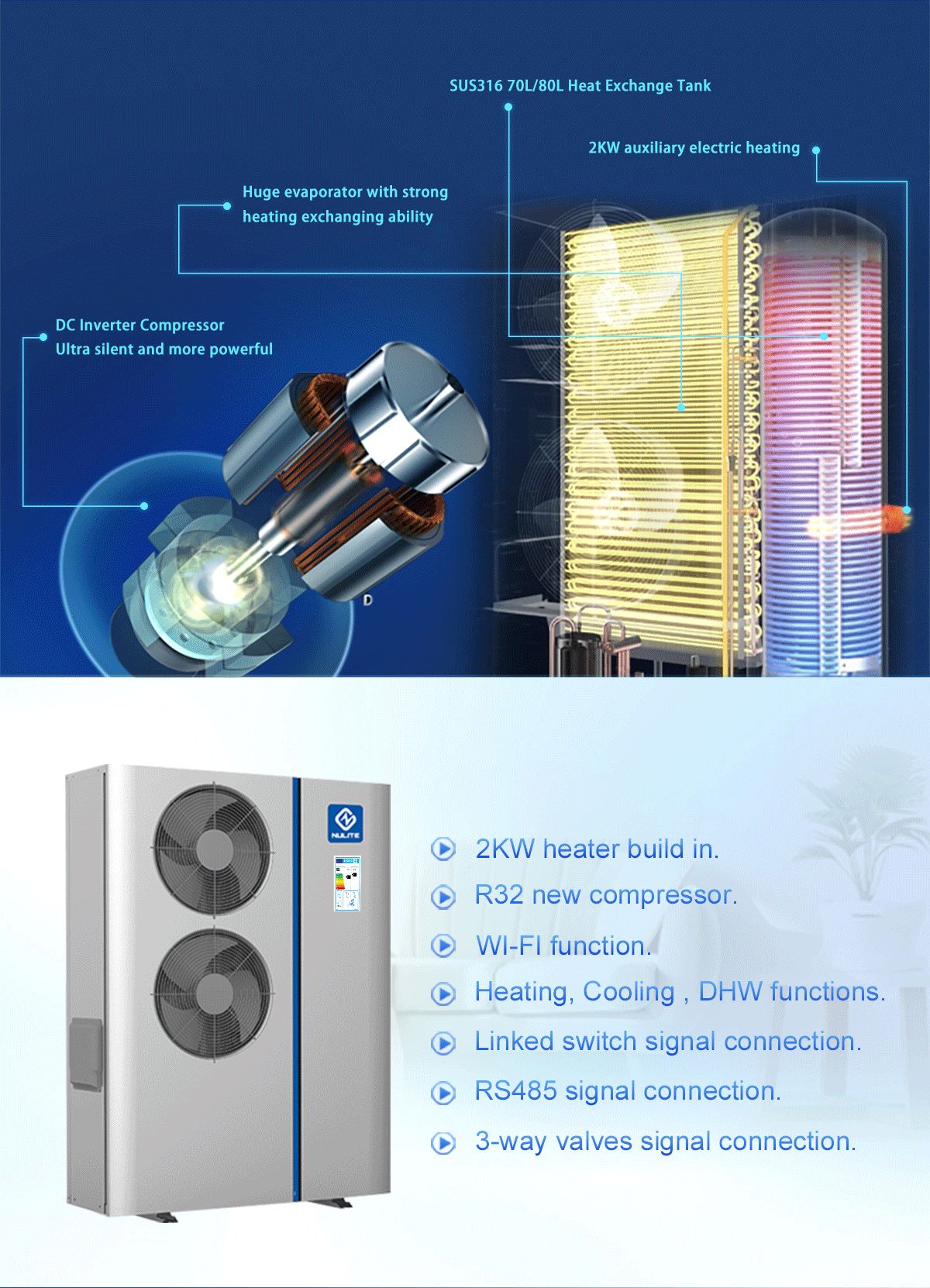 Nulite NL-B345II/R32 monoblock õhk-vesi soojuspump, puhverpaagiga