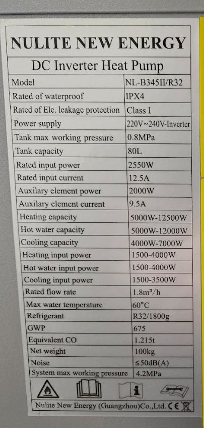 Nulite NL-B345II/R32 monoblock õhk-vesi soojuspump, hind 2600 eur + km