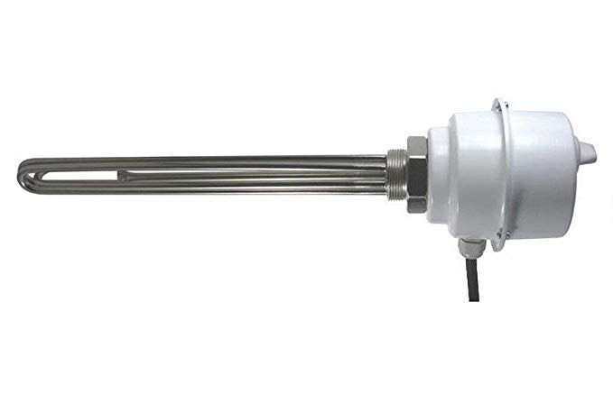 Elektriküttekeha võimus 2000 W, 1 faas 230 V, temperatuuri reguleerimine 20°C – 80°C , keere 1 1/2 "(6/4", 48,8 mm) väliskeere, elemendi pikkus 400 mm (uputava osa sügavus), elemendi materjal AISI 316L