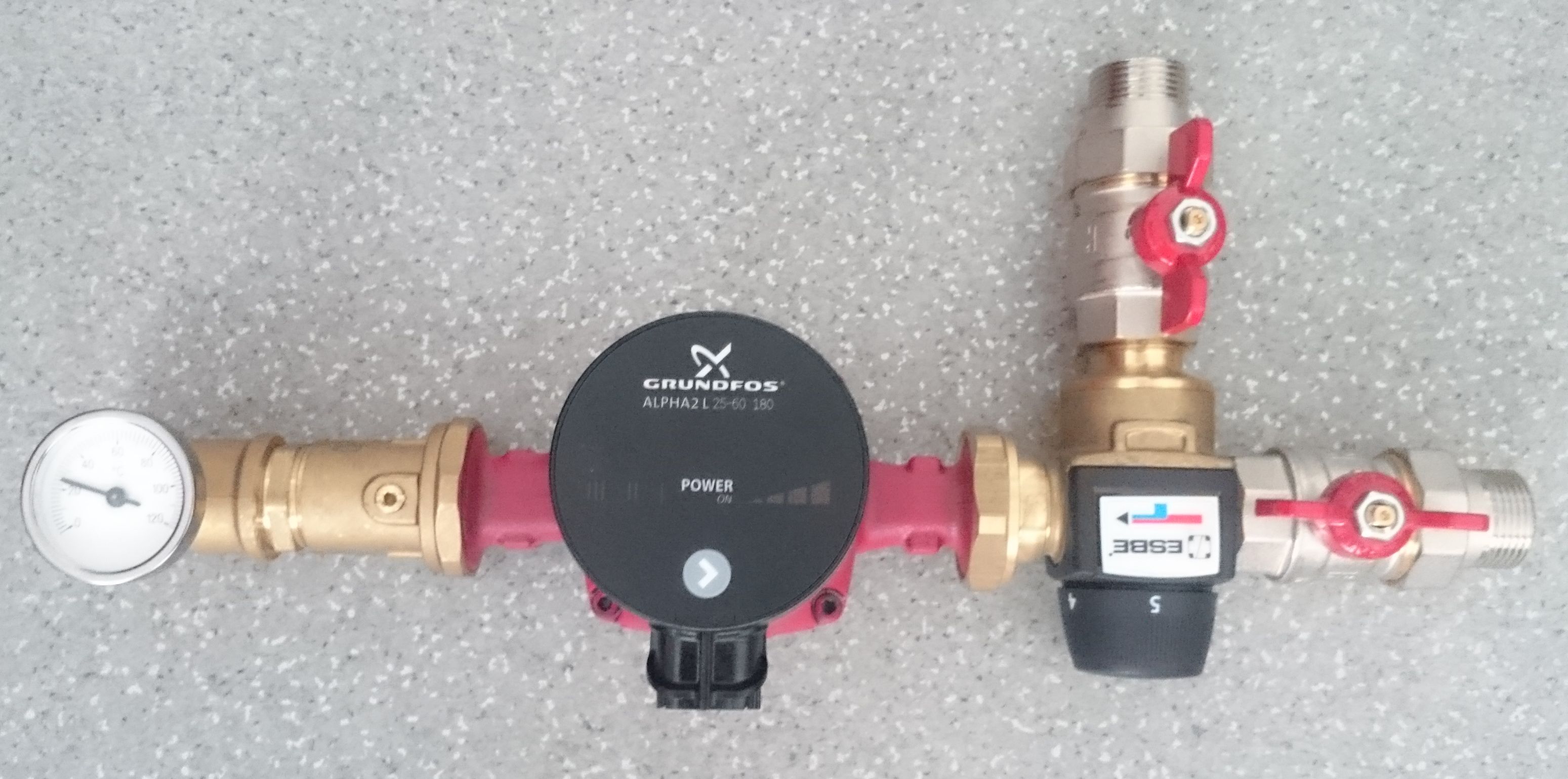 Tagastuv temp. 50–70 °C, Esbe VTC422 ja A klassi tsirkulatsioonipump
