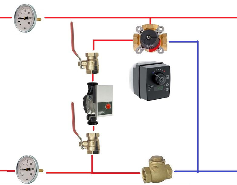 H küttekontuuri katla segusõlme komponendid