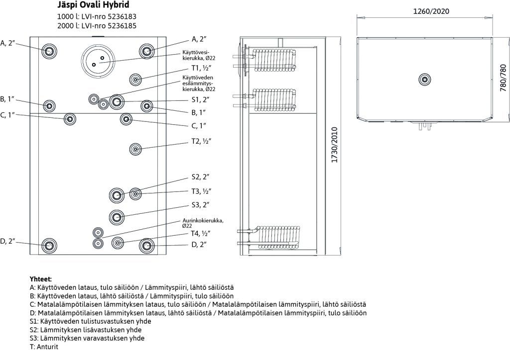 Jäspi Ovali Hybrid 1000 l ja 2000 l