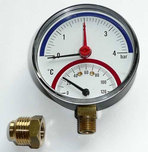 Termo-manomeeter 0-120/0-4 bar, 80 mm, ühendus alt 1/2"