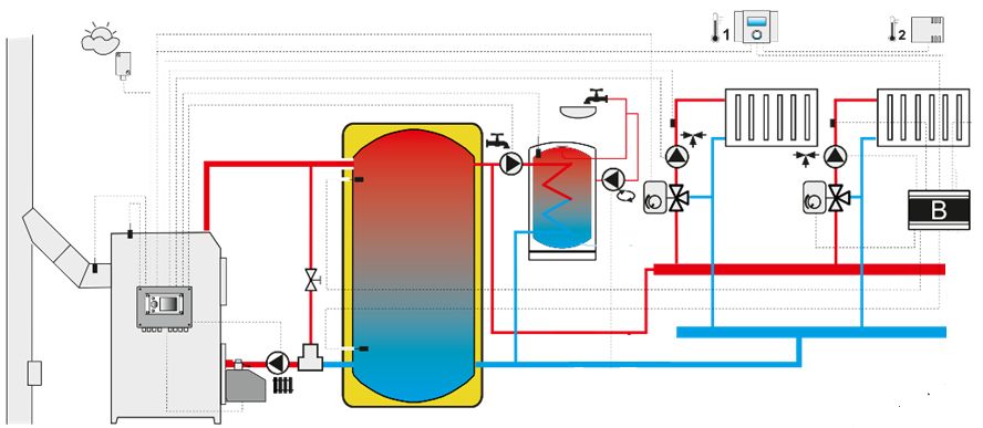 Kui on 2 küttekontuur (näit. radiaatorküte ja põrandaküte) ning tarbevesi, siis hind kallim.